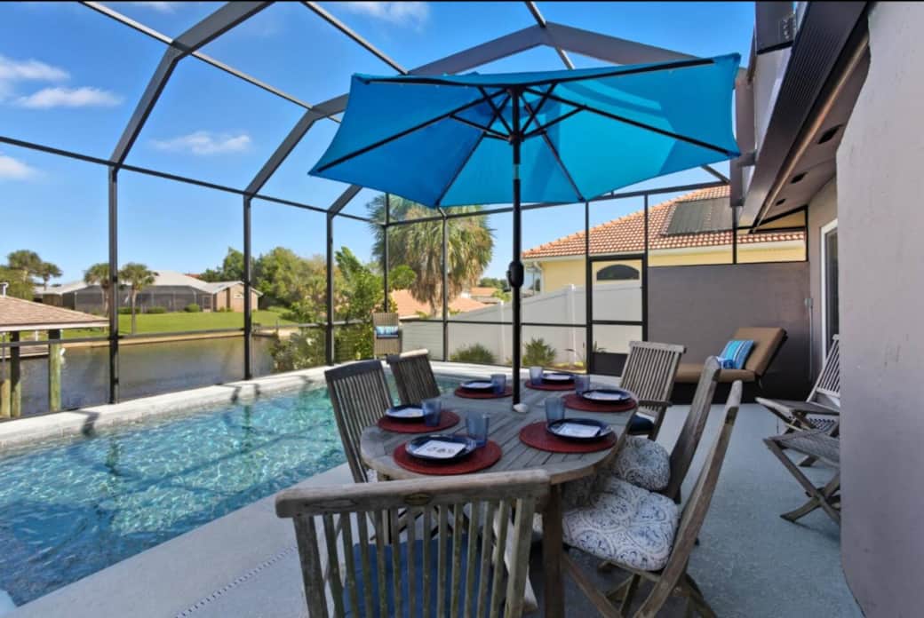 Rest poolside overlooking the saltwater canal